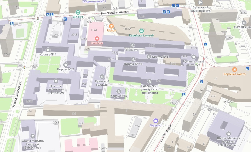 Москва, Новосущевский переулок 6, строение 1 Дворец культуры Российского университета транспорта